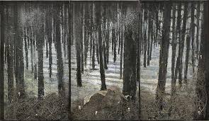 He draws on a number of common themes – initially including Nazi symbols in his paintings. This was misconstrued initially – but what he was attempting to do was to bring to the fore what was being buried in the post war period – by some. Of course he was not alone in this – there was a huge radicalisation of German politics in the 60s and 70s – the Baader-Meinhof group for example – who were reacting against the politics of the previous generation. He embraces other Germanic mythological themes however – such the forest. He’s created a series of paintings behind glass of forests which are very evocative.