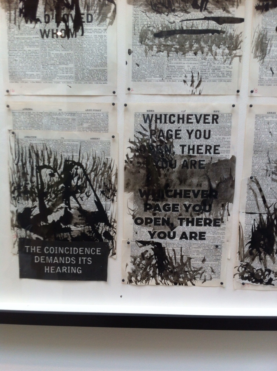 Very interested to see some works of William Kentridge displayed. Much of his work is political, based in struggles in South Africa, as it could not fail to be, growing up in Johannesburg. Black trees – ink and charcoal I think, over print backgrounds, use of text. Apparently his father represented Nelson Mandela in the Treason Trial.