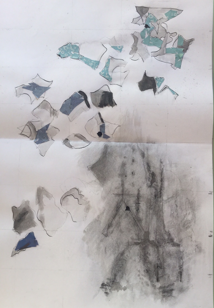 Collage and redrawn tower done on a rainy day