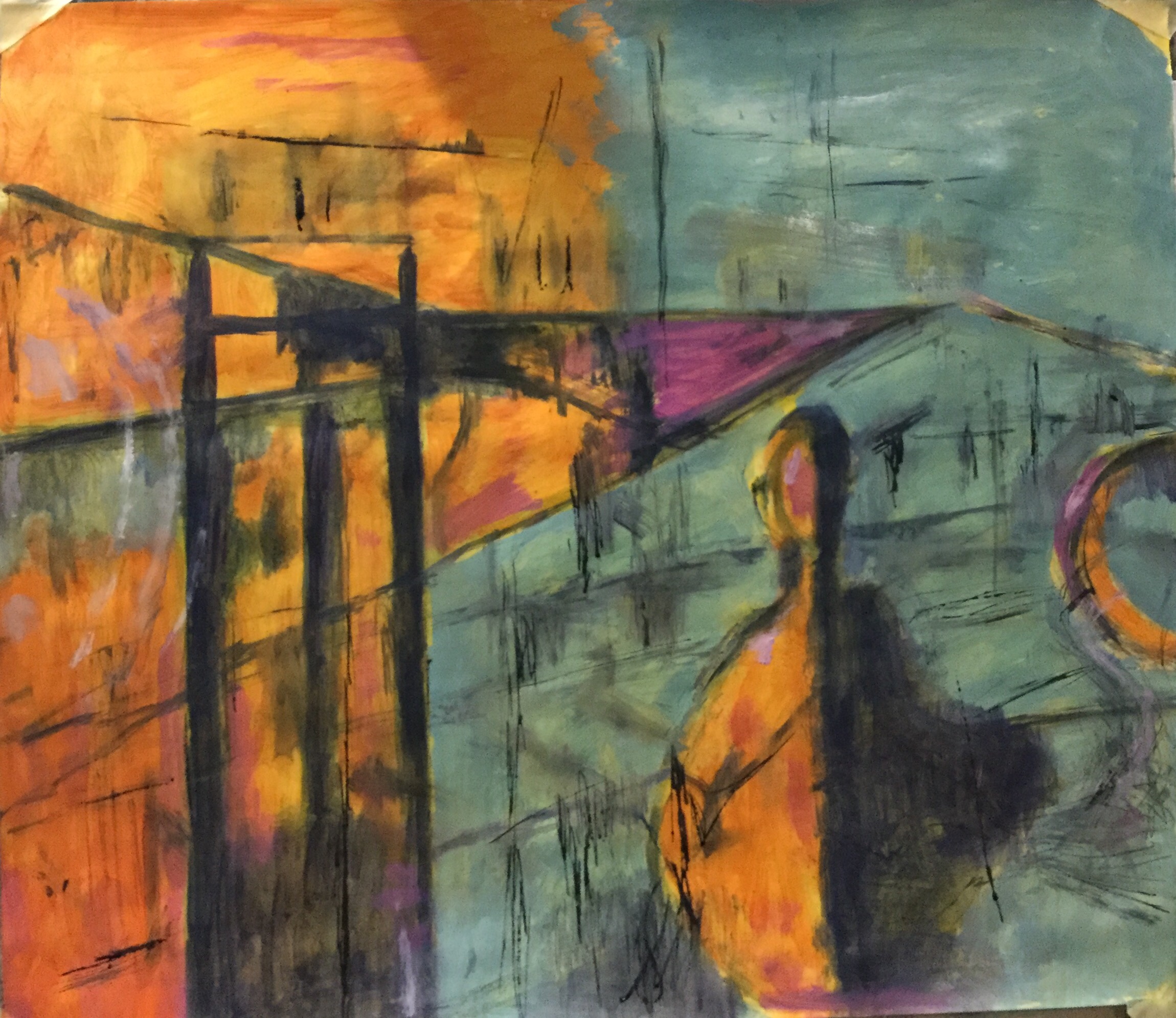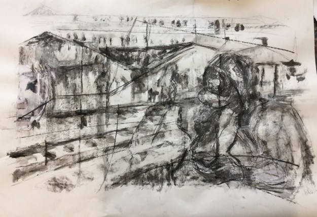 In the morning I did a painting along the lines I’d prepared during the week. It looked okay. I tried to replicate some of the complexity of the drawings/photocopies etc with pen and ink. It kind of worked but in reality the painting gave me less than I thought – probably less than the original drawings/photocopies.