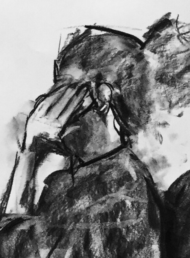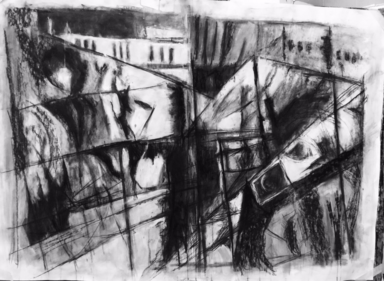 Last week, briefly, I tried to restore the parts of my drawing which I’d erased in white paint. I quite liked the effect. Also did two more drawings of people. I’ve cropped the drawings, they look better. Will redraw. This week has been terribly busy and I had to prepare the presentation about my influences.