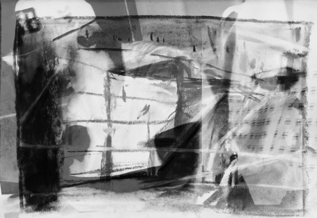 Have spent this week trying to combine an image from a photo I took of a guy reading, with an image of myself, on top of images from my smaller sketches. I tried using coloured inks but think I prefer black and white.